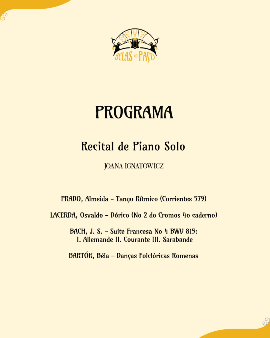 | 29/10/2025 | Belas no Paço - Recital de Piano Solo, com Joana Ignatowicz |