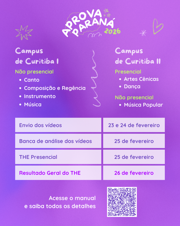 | 13/02/2026 | Unespar divulga classificação geral do Aprova Paraná 2026 e convocação para o THE |