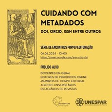 A série de oito encontros promovida pela Divisão de Editoração da PRPPG/Unespar oferece um panorama abrangente dos aspectos fundamentais da publicação acadêmica em periódicos eletrônicos. Ao longo de 2024, os participantes terão a oportunidade de explorar temas essenciais, com um encontro por mês. O programa começa com a montagem de um periódico acadêmico, seguido pela introdução à plataforma OJS e pela identificação do público-alvo e bases indexadoras relevantes. Questões de metadados, como DOI, ORCID e ISSN, serão discutidas em detalhes, juntamente com estratégias para localizar periódicos adequados para publicação. Considerações éticas são enfatizadas para garantir a integridade da pesquisa e das publicações. O aspecto visual e a tipografia das revistas acadêmicas serão abordados para maximizar a experiência do leitor. Além disso, os participantes serão introduzidos a ferramentas online úteis para melhorar a eficiência da pesquisa e da escrita acadêmica. Esses encontros mensais proporcionarão uma base sólida para a comunidade da Unespar no processo de publicação acadêmica, capacitando-a a navegar com sucesso no mundo da pesquisa e publicação. Embora cada encontro possua um público-alvo específico, todos os interessados podem participar e se beneficiar do conteúdo oferecido. Basta efetuar a inscrição prévia no link https://forms.gle/av4mvA1XKNzchbcG7 para ter o acesso autorizado. O link do encontro será enviado para o email cadastrado na inscrição.