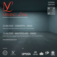 Em parceria com o grupo de pesquisa Núcleo Música Nova, o ensemble instrumental norte-americano Missing Link estará em Curitiba (PR) nos dias 12 e 13 de agosto de 2025 — com concerto e masterclass presenciais, tudo com entrada gratuita.
