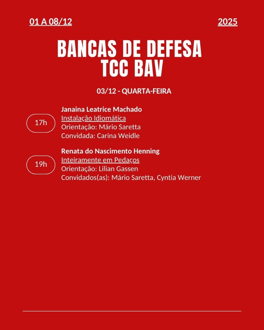 Calendário das Bancas de Defesa de TCC 2025 - BAV