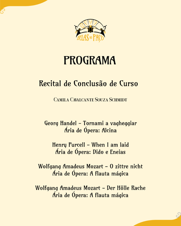 Belas no Paço - Recital de Conclusão de Curso - Camila Cavalcante Souza Schmidt