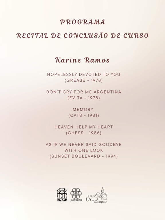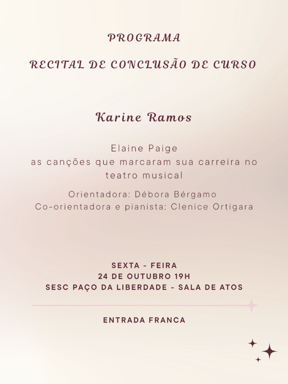 Recital de Conclusão de Curso - Bacharelado em Canto Modalidade Belting