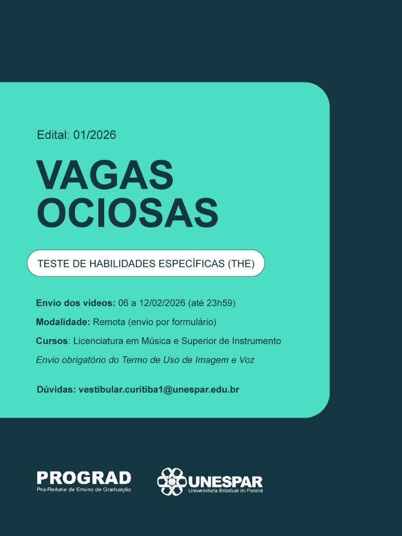 Edital 01/2026 divulga orientações para o Teste de Habilidades Específicas (THE) para ingresso em Vagas Ociosas 2026