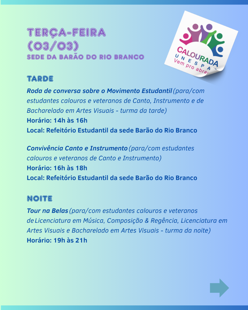 Programação Calourada 2026 Sede Barão do Rio Branco
