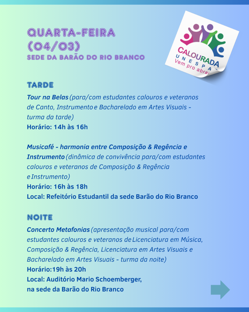Programação Calourada 2026 Sede Barão do Rio Branco