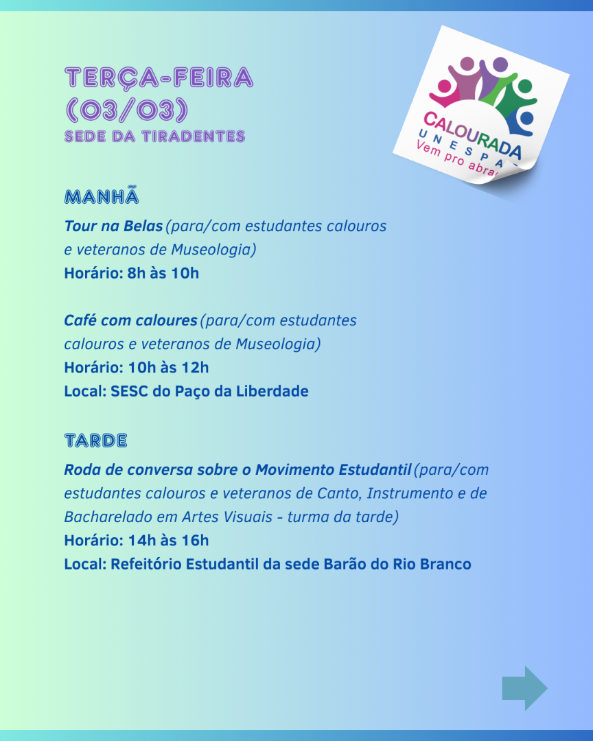 Programação Calourada 2026 Sede Tiradentes