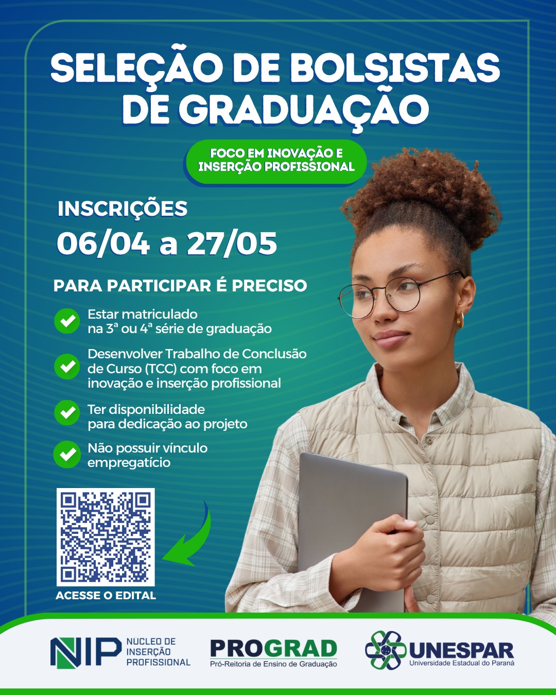 Estudantes de graduação podem se inscrever para bolsas de desenvolvimento de TCC