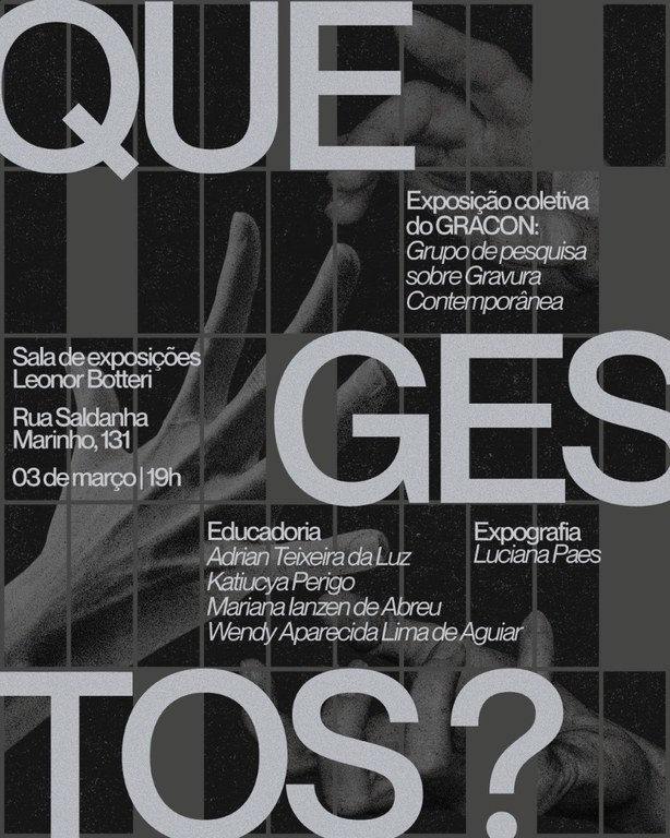 Exposição "Que Gestos?” na Sala de Exposições Leonor Botteri da UNESPAR, Campus Curitiba I - Embap.